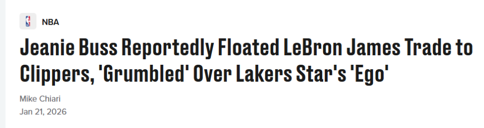 尽管报道称珍妮多年来对詹姆斯积怨颇深,但这却是外界首次对他在湖人的未来提出实质性的质疑。